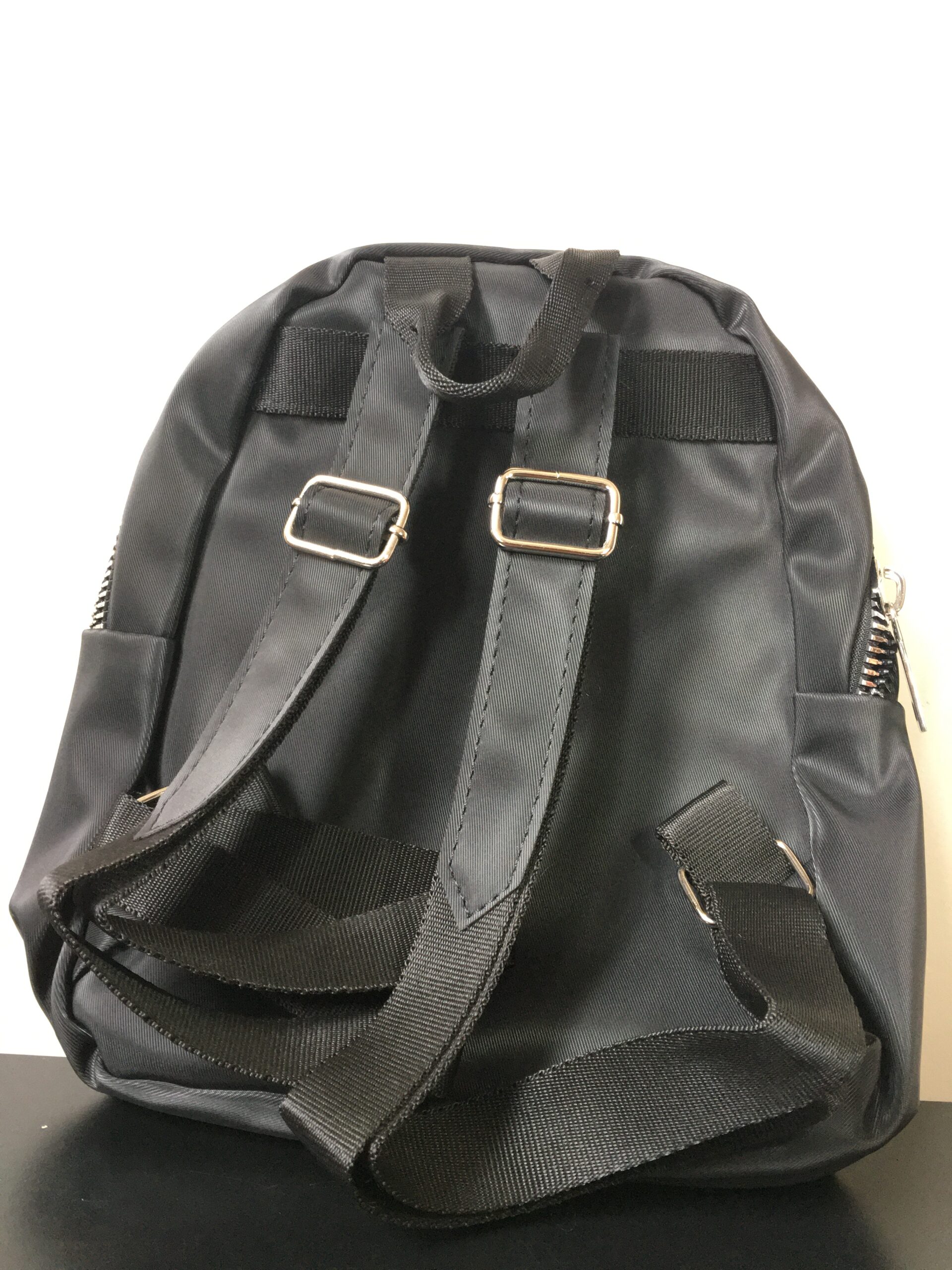 Parlak Kumaş, Önü 2 Fermuarlı Yumuşak Kumaş Siyah Sırt Çantası