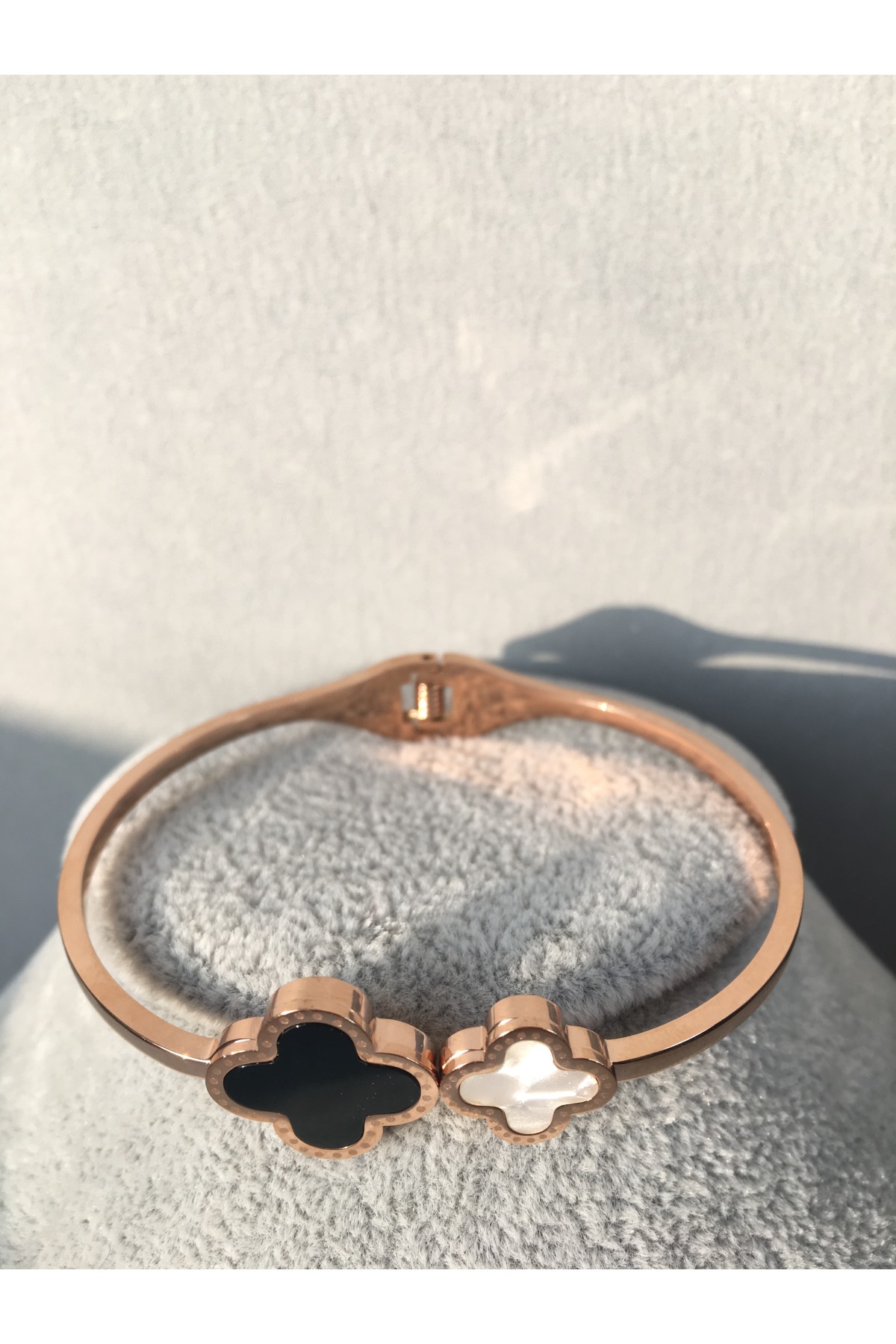 Paslanmaz Ve Kararmaz Çelik, Siyah-Beyaz Yonca Bileklik, Bronze Kelepçe